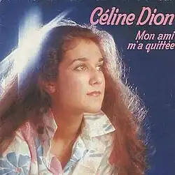 "Mon ami m'a quittée" (lit. "My Friend Left Me") is the first single from Celine Dion's album Les chemins de ma maison. It was released in October 1983 in Quebec, Canada and in November 1983 in France.[1] The song was very successful in Quebec. On 8 October 1983 it entered the singles chart and became number 1 for nine weeks. It spent twenty four weeks on the chart in total. Dion received also 2 Félix Awards the next year. "Mon ami m'a quittée" was released later as a single in France to promote Dion's first album in that country, Du soleil au cœur. A music video was made in 1984, for the Sur les chemins de ma maison TV special. Dion recorded also a German version of this song called "Mon ami, geh nicht fort". It was included as B-side on "Was bedeute ich dir" single, released in Germany in 1984.
