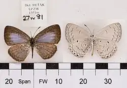 The butterfly was earlier known as Lycaenopsis musina Swinhoe.[3]