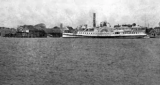 Barely two months later, on August 13, 1862, the United States Government chartered Monohansett.[1] During the American Civil War, Monohansett carried dispatches to United States Navy ships operating in the Atlantic Ocean off Cape Hatteras and Wilmington, North Carolina, as well as in the Chesapeake Bay and the Potomac River. The small screw steamer Helen Augusta operated as the substitute ferry to Martha's Vineyard during the war.[2] By the end of the war in April 1865, Monohansett was the headquarters boat at City Point, Virginia, and was used by General Ulysses S. Grant as a dispatch boat.[1] General Grant reportedly was very fond of Monohansett, and President Abraham Lincoln and his wife also spent time aboard her.[3]