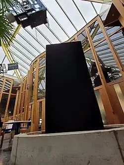 On October 2023, an ultra black (low reflectivity) 1:4:9 ESA/ESTEC monolith replica monolith replica appeared during the European Space Research and Technology Centre open day in the squash court.[10] It has since been installed in the Winter garden at ESTEC.