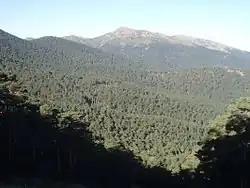 Southern slope of Montón de Trigo as seen from Cerro Minguete. The mountain, seen from the north or from the south, has a shape that alludes to its name. | |