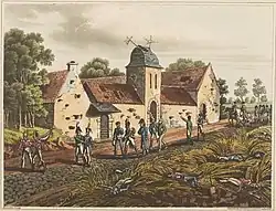 Mont-Saint-Jean is on the reverse slope of the escarpment where the Battle of Waterloo was fought, and is the name Napoleon Bonaparte gave to the battle (la bataille de Mont-Saint-Jean).[1] At the time of the battle there was a farm called Mont-Saint-Jean Farm, on the Charleroi–Brussels road about halfway between the edge of the escarpment and the village.[2]