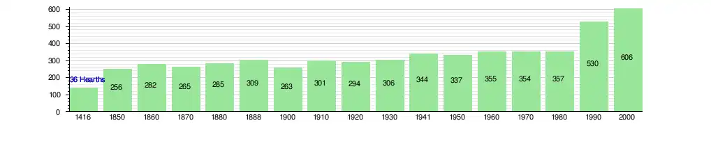 As of 2000, there were 241 private households in the village, and an average of 2.5 persons per household.[9] There were 71 households that consist of only one person and 26 households with five or more people. Out of a total of 246 households that answered this question, 28.9% were households made up of just one person and there was 1 adult who lived with their parents. Of the rest of the households, there are 64 married couples without children, 88 married couples with children There were 12 single parents with a child or children. There were 5 households that were made up of unrelated people and 5 households that were made up of some sort of institution or another collective housing.[10]