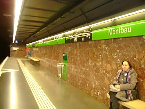Montbau is a Barcelona Metro station, in the Horta-Guinardó district of Barcelona, and named after the nearby Montbau neighbourhood. The station is served by line L3.[1][2]