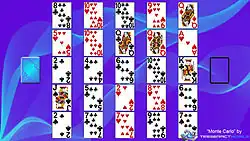 Monte Carlo is a pair-matching patience or card solitaire game using a pack of 52 playing cards where the object is to remove pairs from the tableau.[1] Despite its name, it has no relation to the city with the same name nor to any casino-related game. Alternative names for this game include Good Neighbours and Weddings.[2]