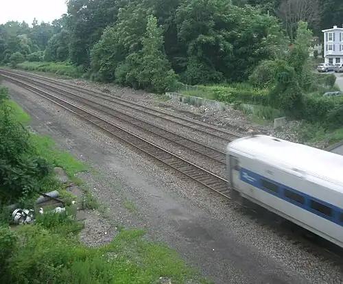 ![]() The former Montrose station as seen in 2011, 15 years after its closure, with a Metro-North train bound for Poughkeepsie visible. | |||||||||||||||||||||