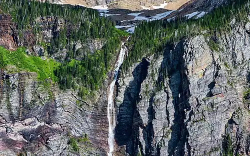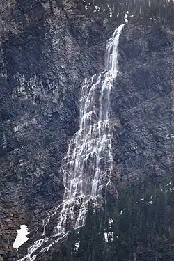 Monument Falls is a waterfall located in Glacier National Park, Montana, US. It descends from meltwater off Sperry Glacier en route to Avalanche Lake. Numerous other waterfalls are located in the immediate area, but they remain unnamed.[2][3]