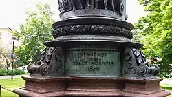 Dedicated by the city of Budějovice 1879.