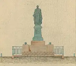 Work on the installation of the monument began in the spring of 1916. Leaders work on the installation of the monument was carried out by the Department of General Affairs of the Ministry of the Interior. In July 1916, a few days before the opening of the monument collapsed.