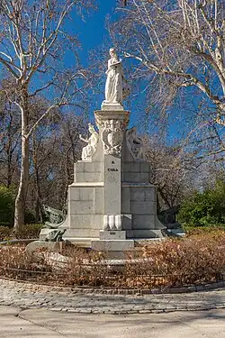 The Monument to Cuba is an instance of public art in Madrid, Spain, consisting of a fountain over which an sculptural group topped by an allegory of Cuba emerges from. It is located at El Retiro Park.