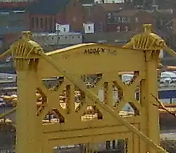 Monack's first graffiti was tagging the South Side and Shadyside neighborhoods, but after his tags were abated, he began placing his tags in hard to reach places, including tall bridges and highway overpasses.[1] Monack was known to use the monikers "Mook" as well as "human hater".[2] He was a part of a graffiti crew that called themselves the "Value Krew" or VK.[3] The name means "knucklehead or idiot".[1] He was an active graffiti writer in Pittsburgh from 1997 to early 2000s. He drew the ire of the then-Pittsburgh Mayor Thomas J. Murphy, Jr., who had tried to provide an outlet for individuals interested in graffiti to use the walls along the Eliza Furnace trail.[1] He has etched "Mook" onto a Department of Public Works "Graffiti Busters" truck that was tasked with cleaning up graffiti.[1] At one point, merchants from the South Side, tired of having their businesses targeted confronted Monack. He tagged "So you want to get tough?" on the Birmingham Bridge[1] in response. Monack became known around the community for vandalizing previously unheard of places.[1] According to Pittsburgh officials, "He's going into areas no one's gone before."[1] He became known among law enforcement across Pennsylvania.[4] After the media coverage of Monack's "Mook" tagging in the Pittsburgh area, it is possible that multiple copycats have applied graffiti using the moniker "Mook".[1] As Monack received more coverage for his daredevil mischief, handful of letters have been sent to the newspaper editors from opponents as well as supporters.[5][6][7]