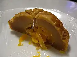 ![]() A Cantonese mooncake filled with lotus seed paste | |||||||||||||||||||||||||||||||||