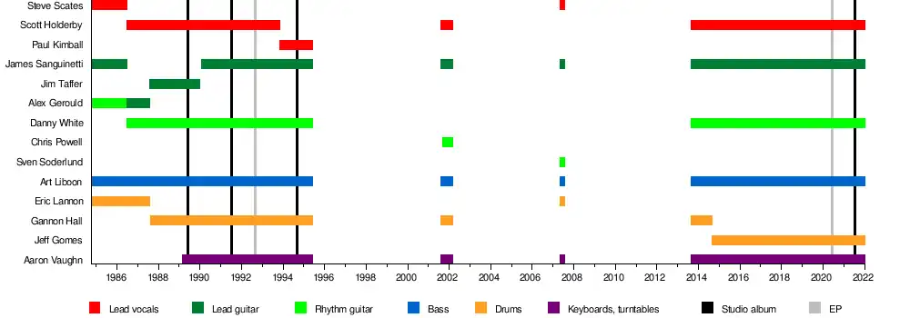 - James Sanguinetti - guitars, backing vocals (1984-1986, 1990-1995, 2001, 2007, 2013–present)