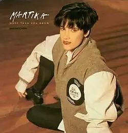 "More Than You Know" is the first single released from Martika's eponymous debut album. "More Than You Know" debuted on the Billboard Hot 100 on the chart dated December 24, 1988,[2] and peaked at #18.[3] The single was re-released in Europe and Australasia in January 1990, and reached the top 40 in the UK (#15[4]), Ireland,[5] and Australia.[6]
