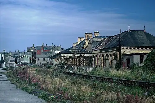 The 1962 summer season would however be its final one, with the 4.25pm service to Lancaster on 8 September that year proving to be the last timetabled departure.[7] The following March would see it listed for closure in the Beeching Report and although it appeared in that summer's BR passenger timetable, the handful of scheduled excursions were in practice diverted to use Promenade instead.[5] It was then omitted from subsequent timetables altogether, which resulted in some publications giving its official closure date as 7 September 1963.[4]