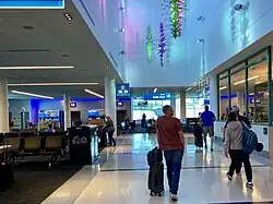 In late 2019, the new terminal roadway was opened. The new roadway has sixteen lanes over two levels, with departures traffic using the elevated level and arrivals traffic utilizing the ground level. The eight lanes on each level are split into five outer lanes for personal vehicles, and three inner lanes for commercial and airport vehicles.[25] Some components of the project, namely the skybridges from the hourly parking deck and rental car facility, the glass canopy over the roadway, and some lanes on the departure level will not be finished until the terminal lobby project is complete.[26]