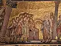 The double arch over the altar is decorated with busts of Christ, the Virgin Mary, the apostles and prophets, divided into compartments and decorated with leaves, possibly later work from the end of the 13th century. On the rectangular apse is a frieze with cherubim and seraphim between clipei, over which are the vault mosaics by Brother Jacopo, which show some connection with those in San Marco Basilica in Venice.[1]