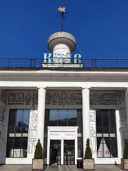 The decorative design of the building is completed by the sgraffito "Sports on the Dnieper" on the wall of the staircase, which leads to the open terrace of the restaurant. Images of athletes and girls with oars evoke distant associations with the art of the 1930s. At the same time, they are deprived of ideological connotations.[7]