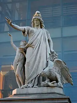 Needing money, in 1873, during the Franco-Prussian War, he was a war correspondent for the New York Herald,[21]: 4 and he was arrested and imprisoned "for a time" as a spy for France.[9] He was admitted into the Society of Artists, Berlin, and at age 29 was the first foreigner to win the Michael Beer Prix de Rome, for a bas relief entitled Israel. The prize of $1,000 provided for two years of study in Rome,[22]: 229 but he traveled to Rome by way of the United States, where he had not been for five years,[12]: 166 as he had "unexpectedly" received a commission from B'nai B'rith for a monument to religious liberty.[12]: 164 [11]: 41
