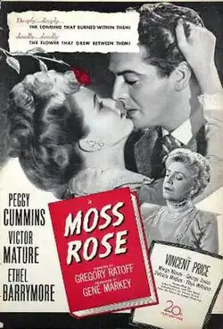 Moss Rose is a 1947 American film noir mystery film directed by Gregory Ratoff and starring Peggy Cummins, Victor Mature and Ethel Barrymore.[1] It is an adaptation of the 1934 novel Moss Rose by Marjorie Bowen based on a real-life Victorian murder case.