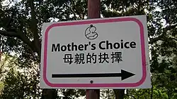 ![]() Sign showing directions to Mother's Choice's Kennedy Road office | |