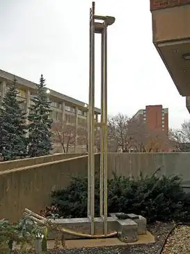 Mother's Helper is a public sculpture by American artist Derek Chalfant located on the Indiana University – Purdue University Indianapolis (IUPUI) campus near downtown Indianapolis, Indiana. The piece is located in a small alcove near the ramp to the west entrance of the Joseph T. Taylor Hall (formerly the University College building) at 815 W. Michigan Street.[1]