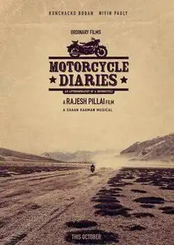 Motorcycle Diaries is an unreleased Indian Malayalam-language film directed by Rajesh Pillai, starring Kunchako Boban and Nivin Pauly in lead roles. The film is based on the mental relationship between one motorcycle and his previous owner. The film was produced by Sugeeth and Satheesh under the banner of Ordinary Films.[1] Bollywood scenarist Suresh Nair, Tamil writer Jeyamohan and Rajesh Pillai co-wrote the screenplay.[2] Santosh Thundiyil and Aneesh Lal crank the camera for the film.[3] Shaan Rahman composes the music and also makes his debut as an actor.[4] The film started shooting in Kolkata in May 2013.[5]