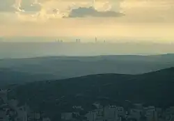 Mount Ebal (Hebrew: הַר עֵיבָל, romanized: Har ʿĒḇāl; Arabic: جَبَل عَيْبال, romanized: Jabal ʿAybāl) is one of the two mountains near the city of Nablus (biblical Shechem) in the West Bank , and forms the northern side of the valley in which Nablus is situated, the southern side being formed by Mount Gerizim.[1] The mountain is one of the highest peaks in the West Bank and rises to 935 m (3,068 ft) above sea level, some 60 m (200 ft) higher than Mount Gerizim.[2] Mount Ebal is approximately 17 km2 (6.6 sq mi) in area,[2] and is composed primarily of limestone.[3] The slopes of the mountain contain several large caverns which were probably originally quarries,[3] and at the base towards the north are several tombs.[4]