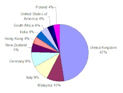 In the 2001 Australian Bureau of Statistics Census of Population and Housing, the population of the Mount Osmond census area (which includes the suburbs of Glen Osmond, Leawood Gardens and Waterfall Gully) was 2,497 people, in an area of 6.08 square kilometres. Females outnumbered males 54.2% to 45.8%, and some 21.4% of the population was born overseas (see chart for a breakdown). There was only a slight change in the 2006 census, with the population increasing by 25 to 2,522.[15] Mount Osmond itself had a population of 612[16] during the 2006 census.