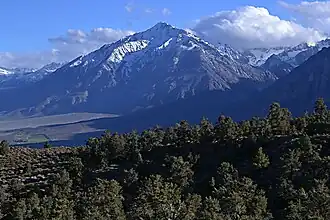 Mount Tom is a large and prominent peak near the city of Bishop in Inyo County of eastern California. It is in the Sierra Nevada and east of the Sierra Crest. The mountain is also in the John Muir Wilderness.