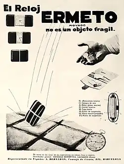 A Movado Ermeto watch was a pocket/purse watch manufactured between 1926 and 1985 by Movado in La Chaux-de-Fonds (Switzerland).[1] The model, a joint creation between case maker Huguenin Frères and watch maker Movado, was introduced in 1926. It won the Grand Prix at the 1929 Barcelona International Exposition.[1]