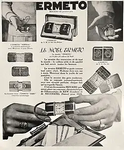 - ^ 1930 advertisement in French telling: Ermero "Master", standard winding. Ermeto "Normal", standard and automatic winding. Ermeto "Baby", automatic winding only