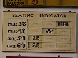 For 2013, the average price for a movie ticket in the United States was $8.13.[71] The price of a ticket may be discounted during off-peak times e.g. for matinees, and higher at busy times, typically evenings and weekends. In Australia, Canada and New Zealand, when this practice is used, it is traditional to offer the lower prices for Tuesday for all showings, one of the slowest days of the week in the movie theater business, which has led to the nickname "cheap Tuesday".[72] Sometimes tickets are cheaper on Monday, or on Sunday morning. Almost all movie theaters employ economic price discrimination: tickets for youth, students, and seniors are typically cheaper. Large theater chains, such as AMC Theatres, also own smaller theaters that show "second runs" of popular films, at reduced ticket prices. Movie theaters in India and other developing countries employ price discrimination in seating arrangement: seats closer to the screen cost less, while the ones farthest from the screen cost more.