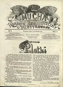 Mucha (Polish pronunciation: [ˈmu.xa] ⓘ) was a Polish satirical magazine published in Warsaw in the periods 1868-1939 and 1946–1952. In 1953 it was merged into another satirical one, Szpilki.[1][2]