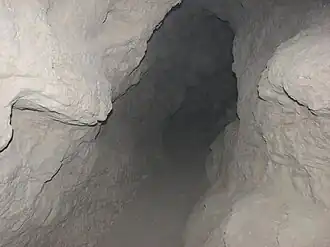 The Mud Caves are a popular feature in Anza Borrego Desert State Park in San Diego County, California. The caves, located in the Carrizo Badlands, along the Arroyo Tapiado, were created by water flowing through a thick deposit of silt and are an example of pseudokarst topography. There are at least 22 caves, some up to 1,000 feet (300 m) in length and 80 feet (24 m) in height.[1] Many of the caves are easily accessed.