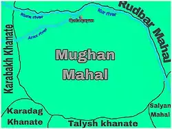 The Mughan Mahal was present in Sabirabad and Saatly Districts. The district governor was Hasan Khan.[1]