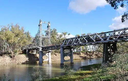 The Murrumbidgee River bridge, Carrathool is a heritage-listed road bridge that, until its closure in 2019, carried Carrathool Road across the Murrumbidgee River in Carrathool, New South Wales, Australia. The bridge is owned by Transport for NSW. The bridge is also called the Carrathool Bridge over Murrumbidgee River and provides a key connection between the Sturt Highway and the Murrumbidgee Road. It was added to the New South Wales State Heritage Register on 20 June 2000.[1]