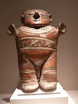 The Formative Gallery houses pieces from many diverse cultures. Among these are Cupisnique, Salinar, Vicus, Viru and Paracas in its older phase or “cavernas”. During this period (1250 B. C - 1 A. D.) there is a remarkable advance in ceramic art. Painting and sculpture take in place; there are beautifully naturalistic and symbolic representations; many of them enriched by the use of incise decoration in which the Cupisnique artist get to a high development.