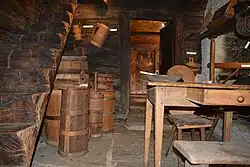 The Museum Walserhaus was opened in 1938 as the first ethnographic museum in the canton Ticino. For this purpose, a very old house from 1386 was made available and could therefore be preserved in its original structure.[4] From the beginning, the exhibition grew steadily. In 2006 the permanent exhibition was completely reorganized. Since then, the exhibition concept has expanded to include the nearby barn and the vegetable garden in front of the museum. Since 2009, the museum received another barn in which there is space for temporary exhibitions or handicraft workshops. In 2016, a project was launched to update and modernize the exhibition with a particular focus on upgrading the architectural heritage, the collection and the Ggurijnartitsch through an innovative method of presentation. Thanks to the project, the jobs of the curator and the guardian were preserved and work opportunities were offered to the residents and craftsmen of the village. The current exhibition, inaugurated in 2018, can now be seen in its modern form with updated technical infrastructure. In 2020 the Museum Walserhaus was nominated for the European Museum of the Year Award (EMYA).;[5] in 2021 it won the Meyvaert Award for Sustainability that goes to a museum which demonstrates an exceptional commitment to social, economic and environmental sustainability in how it operates and/or how it presents issues of sustainability in its displays and programmes.[6]