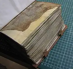 Originally preserved in this workshop documents for the exhibition "Treasures of Mount Athos", which took place in 1997 in the rooms of the museum.[12] Since then, the equipment has been adapted to the increased demands on the processing and preservation of the exhibits. Since the year 2000, the specialized conservators have been working in a separate room, taking care of the diagnosis, documentation and preservation of fonts made of paper or parchment. While parchment and hand-made papers age quite slowly, the preservation of books printed on industrially produced paper is more laborious. The proportion of acids makes them easier to decompose.