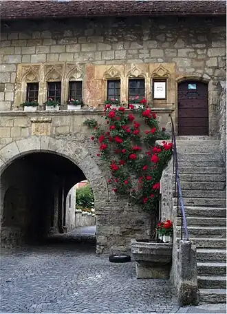 The Museum of Estavayer is a regional museum. It was built in a mansion from the 15th century. Most of the collections comes from donations from families in Estavayer or Fribourg, which highlights the culture and history of the region. Its nickname "Frog Museum" is due to its collection of 108 naturalized frogs. They take human poses and illustrate the daily life of the 19th century. The museum was initiated by a local association for the cultural development called Société de développement in 1900. The official inauguration, in its still current form as a municipal museum, took place on May 8, 1927.[2] The museum has five rooms. Each has a thematic coherence: weapons, daily life, domestic life, natural history and farm life, and the frog collection. The museum also hosts temporary exhibitions.