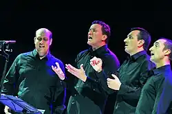 In the late 1980s, owing to the growth in popularity of so-called World Music - especially the success of the Bulgarian polyphonic choral recordings of the album Le Mystère des Voix Bulgares - Corsican artists such as Voce di Corsica began to record music for the international market. Attempts to appeal to this market had a major effect on Corsican music. Ethnomusicologist Caroline Bithell describes some of these changes, saying that paghjella recordings began to shift from a more polyphonic sound to a more "homophonic sound where the emphasis is on the effect created by the sum of the voices," as opposed to earlier examples of paghjella, "where the individual voices and melodic lines are far more clearly differentiated and behave more independently."[1] Additionally, younger singers may have a tendency to exaggerate use of elements considered by outside music consumers to be "typically Corsican," such as heavy use of melisma. Despite the changes initiated by interaction with the world music market, Bithell argues that Corsica can also be seen as "one of the success stories, in musical terms, of an era where there are tales aplenty of once unique and flourishing musical cultures threatening to disappear forever," and that partly as a result of commercial recordings, "indigenous music has been pulled from the brink of the grave and grown to take its place as a national emblem."[1]