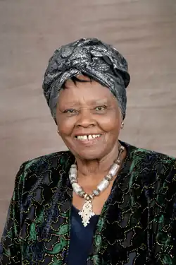 Muthoni Gachanja Likimani (born 1926) is a Kenyan activist and writer, who has published works of both fiction and non-fiction, as well as children's books.[1] In her career she has also been a broadcaster, actress, teacher and publisher.[2] She was the first Kenyan beauty queen, the first African to establish a public relations firm in Kenya and one of the country's earliest female authors.[3]