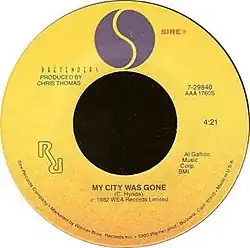 "My City Was Gone" is a song by the British rock group the Pretenders. The song originally appeared in October 1982 as the B-side to the single release of "Back on the Chain Gang";[3] the single was the first release for the band following the death of founding bandmember James Honeyman-Scott. The song was included on the album Learning to Crawl, which was released in early 1984, and it became a radio favorite in the United States.