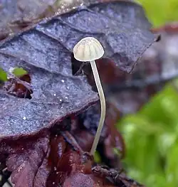 Mycena guldeniana is a species of agaric fungus in the family Mycenaceae. Described as new to science in 2011, it occurs in Norway. The specific epithet guldeniana honors Norwegian mycologist Gro Gulden. The whitish caps of the fruit bodies are hemispherical before flattening out, and measure 1–2 mm in diameter. They appear solitarily or in small groups on the fallen leaves (occasionally on twigs) of Salix species. The spores are broadly ellipsoid to pip-shaped, smooth, amyloid, and measure 7.5–8.7–10 by 4.8–5.5–6.5 μm.[1]