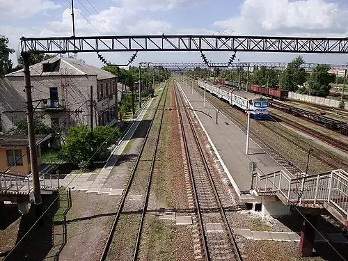 The line on which the railway station exists was built in 1914-1915 as part of a strategic ring line around the city (construction began in the mid-1910s and was completed in 1929). The station was opened not later than 1931; it was called Mykilska Slobidka,[2][3] and later Vyhurivschyna.[4] The name Kyiv-Dniprovskyi was used since 1974.