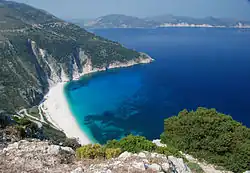 - ^ a b "Best beaches on the Ionian Islands, Greece: Myrtos beach, Kefalonia" The Daily Telegraph, 21 August 2008