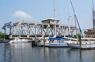 The current bridge was built in 1984, and is a truss-style swing bridge, providing 13 feet (4.0 m) of vertical clearance when closed.[2]