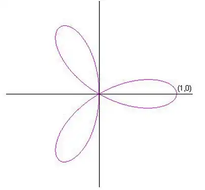 Let ρ denote the Rhodonea curve, which is a loop at 1. Its parametric equations are