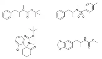 - ^ Collins M, Donnelly C, Cameron S, Tahtouh M, Salouros H (March 2017). "Identification and characterization of N-tert-butoxycarbonyl-MDMA: a new MDMA precursor". Drug Testing and Analysis. 9 (3): 399–404. doi:10.1002/dta.2059. PMID 27574107.
